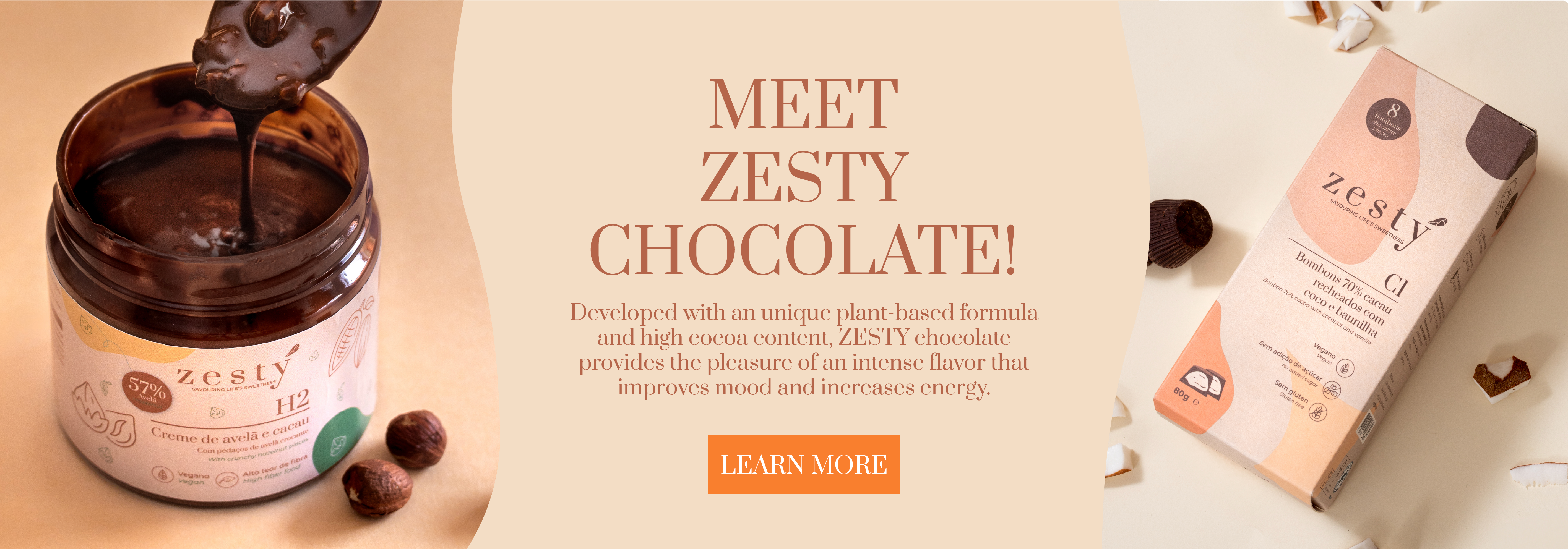 Zesty came about after a long journey of self-discovery. I felt lost between career changes, training and even country changes, because I believed that my happiness depended on professional success. I found an escape in exercise, but I was obsessed with a body that wasn’t mine, oscillating between dietary restrictions, calorie counting and excesses. Little by little, I adopted a plant-based diet, but anxiety led me to sugary sweets.