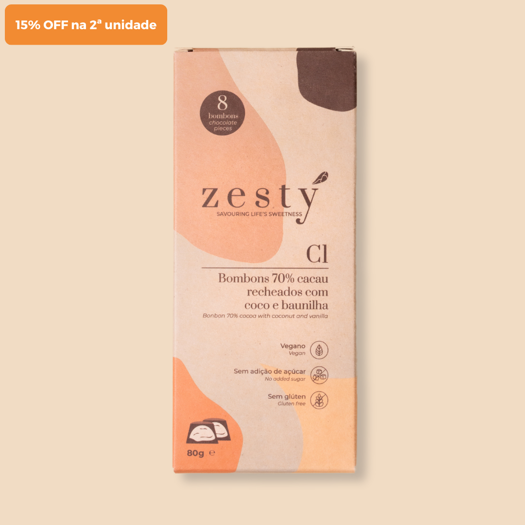 Adorei estes bombons! O chocolate é muito suave, pouco doce e estaladiço, e o recheio é tem a textura e o sabor do coco e a essência leve da baunilha. A combinação funciona muito bem em conjunto.