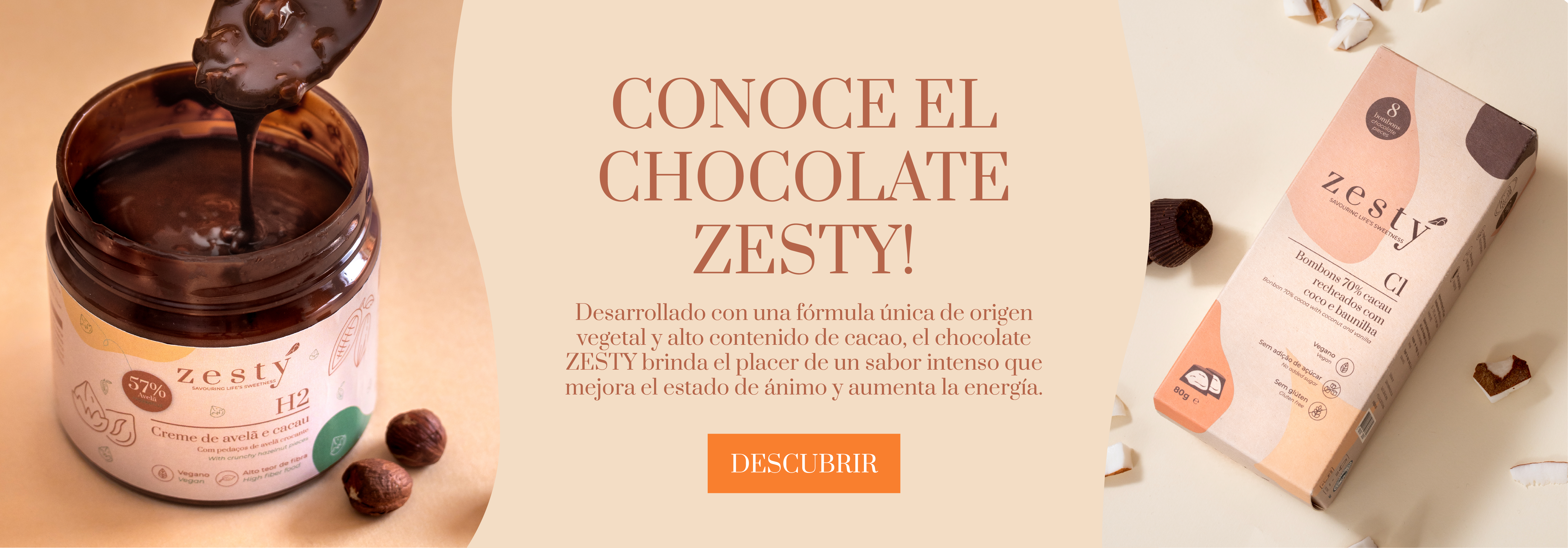 Redescubrimos el poder del cacao como superalimento, rico en hierro, magnesio, fósforo y vitaminas del grupo B. Zesty es más que un chocolate con alto contenido en cacao, vegano y sin azúcar añadido. Se trata de recargar el cuerpo y la mente a la vez que brindamos un momento único de sabor y gratitud.