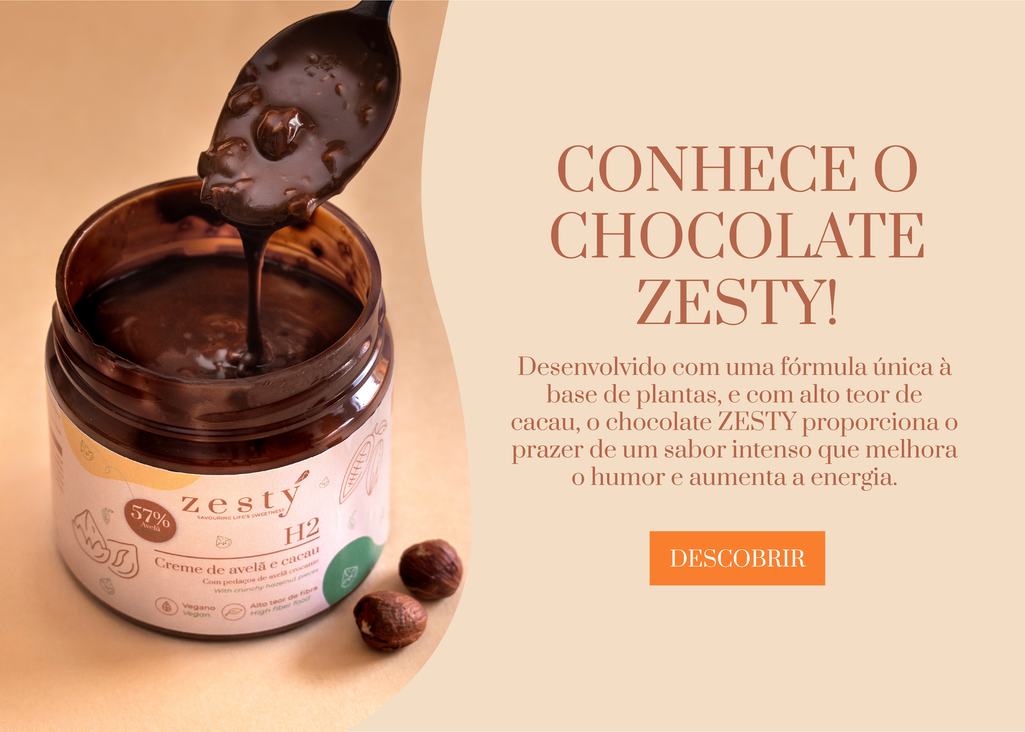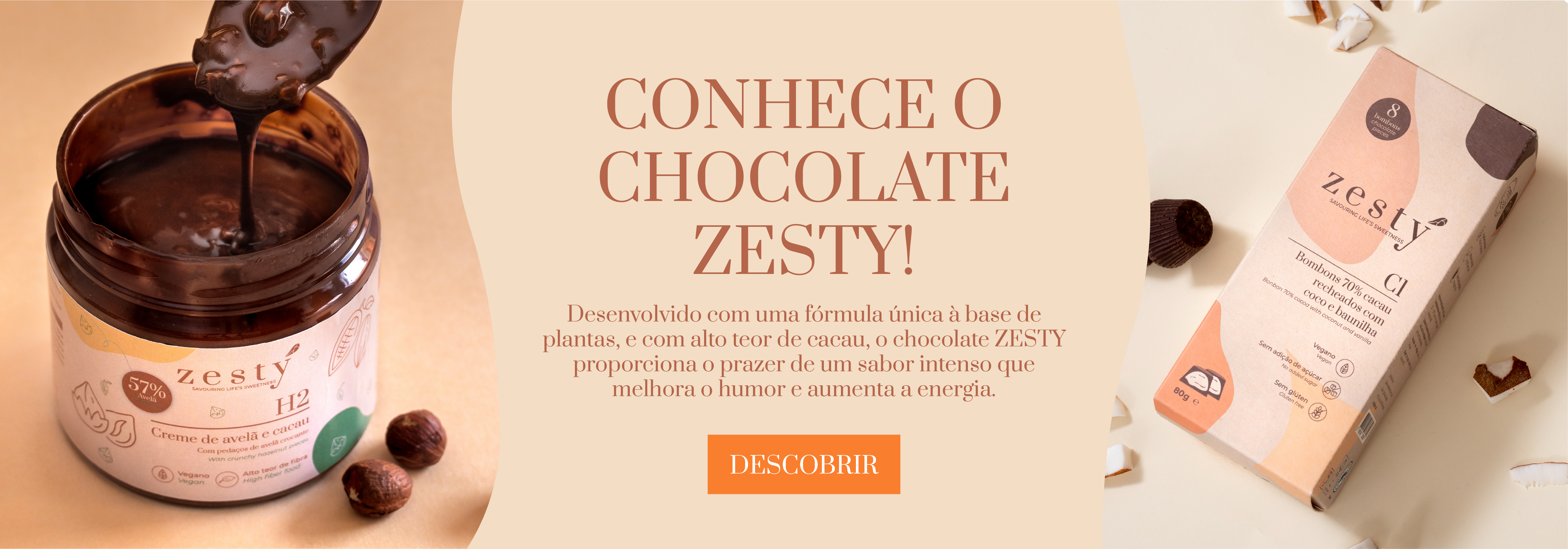 Redescobrimos o poder do cacau como superalimento, rico em ferro, magnésio, fósforo e vitaminas do complexo B. Zesty é mais do que um chocolate de alto teor em cacau, vegan e sem adição de açúcares. É sobre recarregar a energia do corpo e da mente enquanto proporcionamos um momento único de sabor e gratidão.